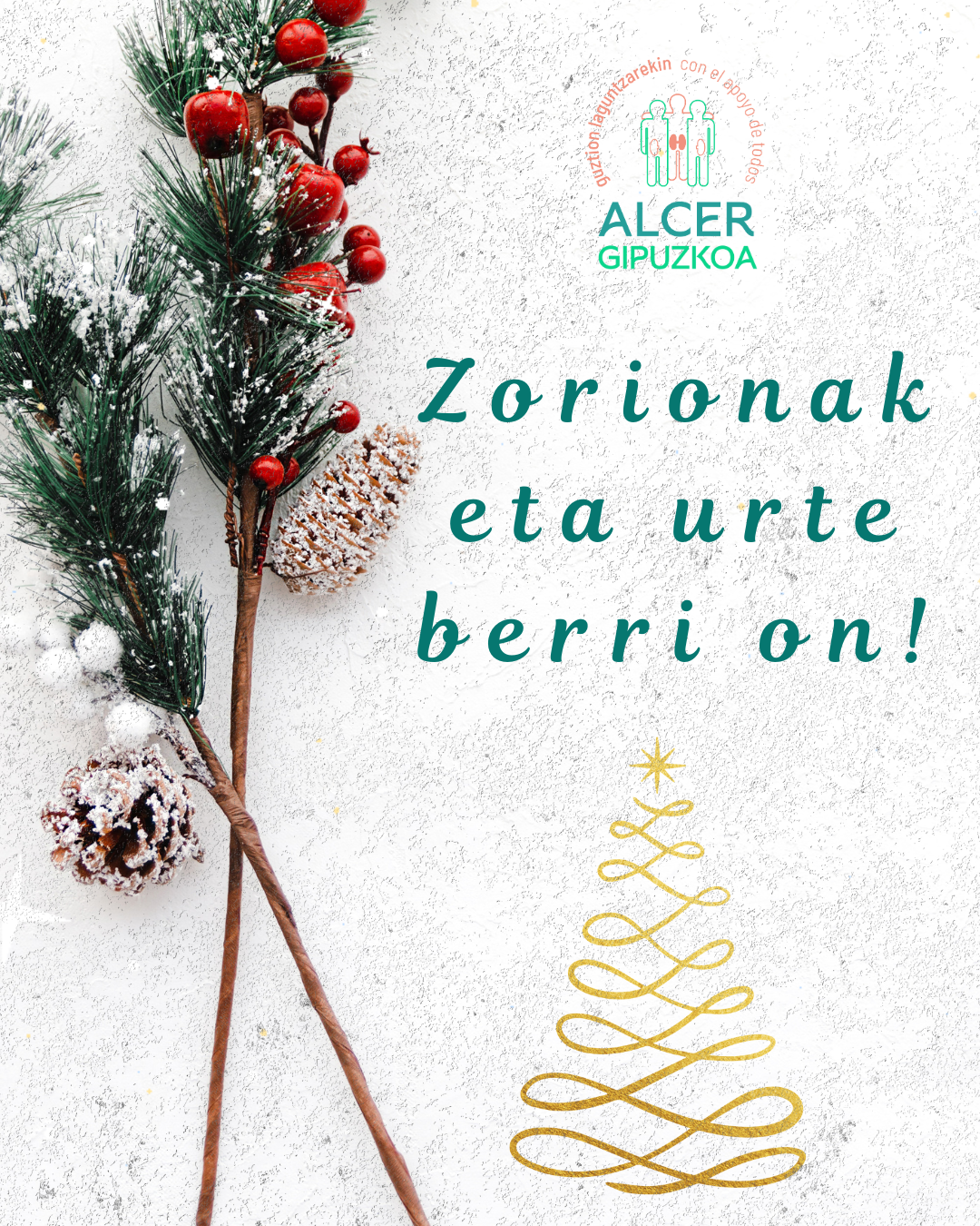 ¡Alcer Gipuzkoa te desea Felices Fiestas y Feliz Año Nuevo 2026! Alcer Gipuzkoa permanecerá abierto, salvo los días festivos, para continuar ofreciendo la atención al colectivo renal. ¡Que tengais Felices Fiestas!❤️
