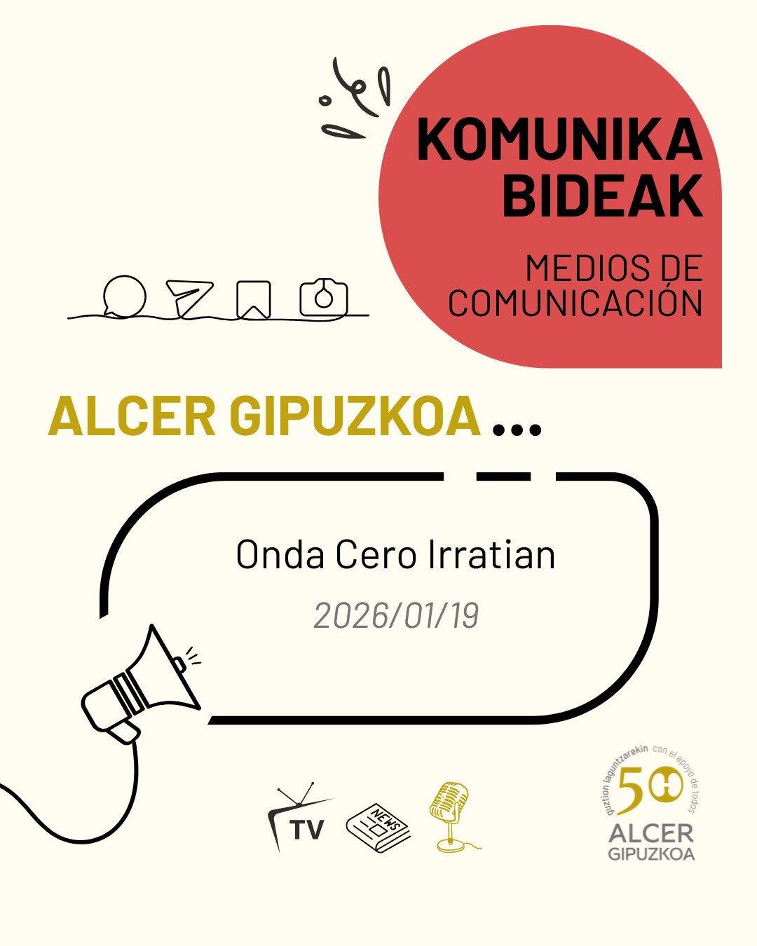 A raíz del 50 aniversario de Alcer Gipuzkoa, Itziar Sagardia, una de las trabajadoras sociales de la entidad, ha sido entrevistada hoy en Onda Cero, en el programa del mediodía. En la entrevista se ha hablado del recorrido de Alcer Gipuzkoa, de cómo fueron los comienzos hasta el día de hoy, y la labor que